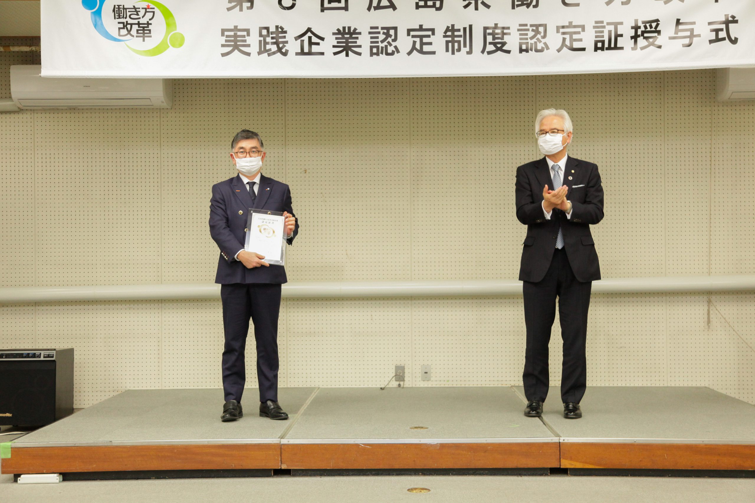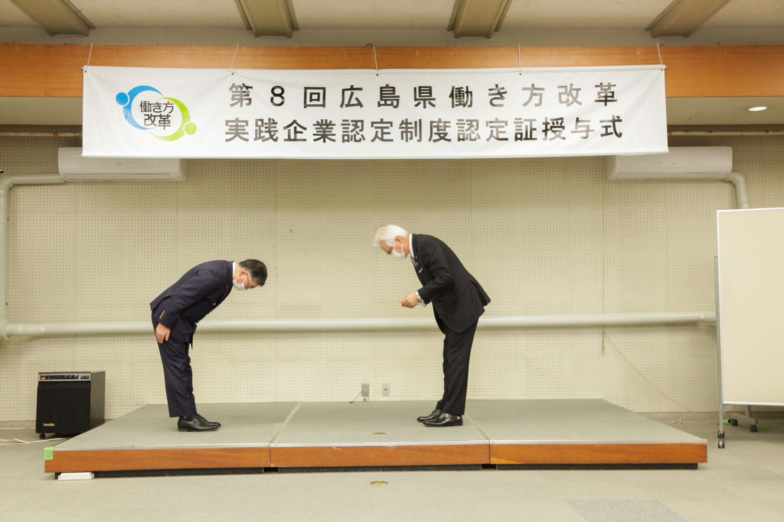 弊社が働き方改革実践認定企業になり、第8回広島県働き方改革実践企業認定制度認定証授与式で