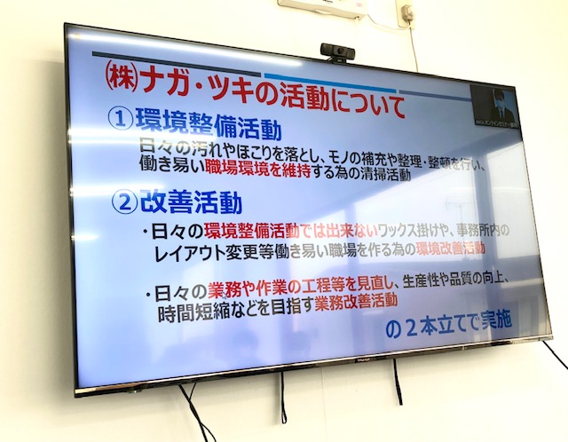 ナガ・ツキでは環境整備リーダーを本社3チームと4工場で形成、徹底した環境整備を続けています。当講座もリーダーが受講し、さらに質の高い環境整備の実践を目指しています。