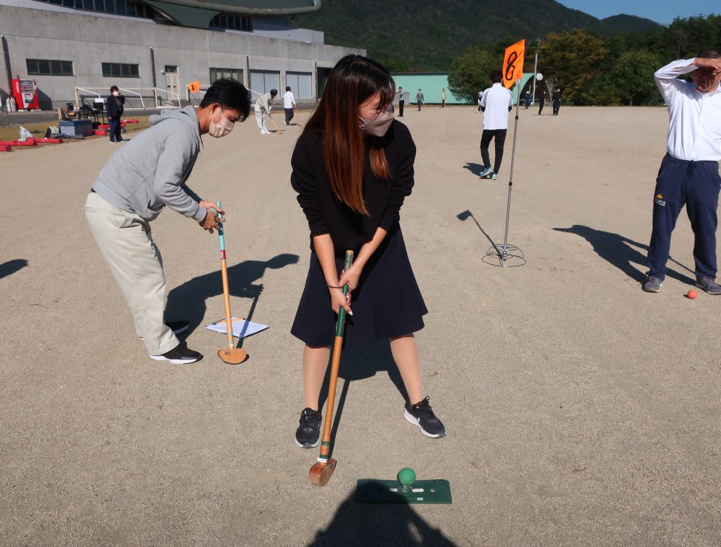 しっかり頭を使った後は、外でグランドゴルフ大会!