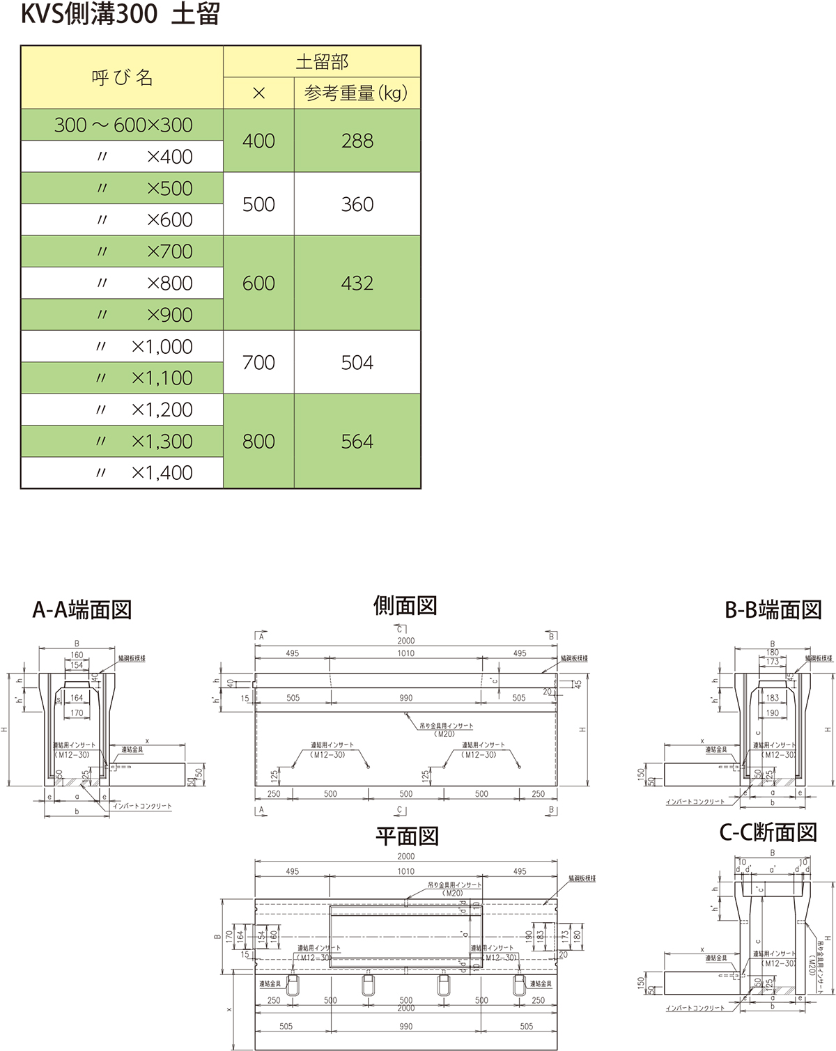 図面 - P055 自由勾配(KVS)側溝〈土留〉
