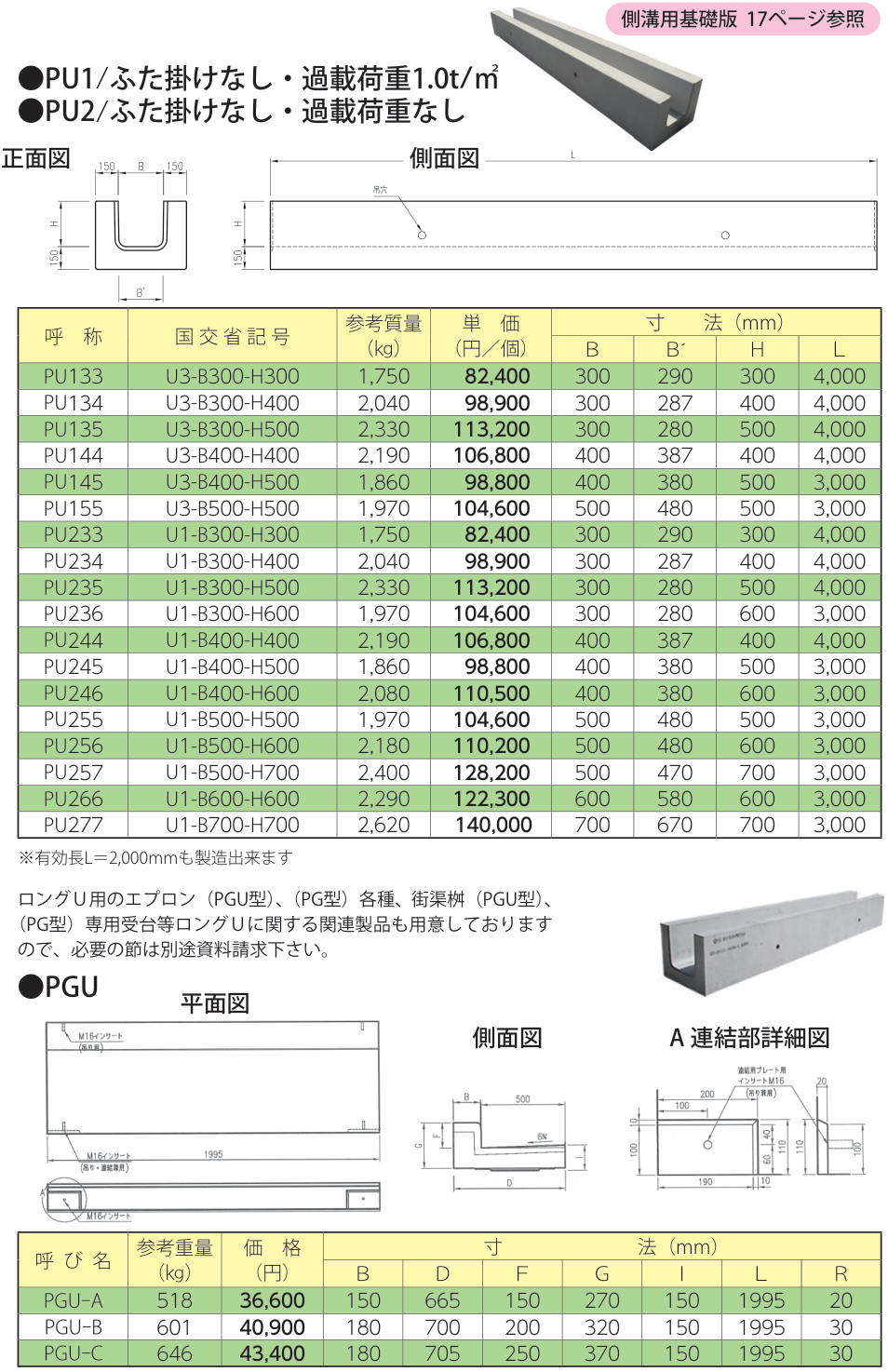 肉厚15cm、基本の長さ4mの側溝です。