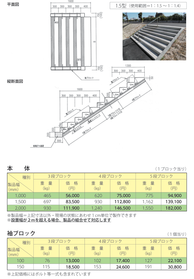 ・階段幅1.0m~4.0mまで50cmピッチで7種類で展開