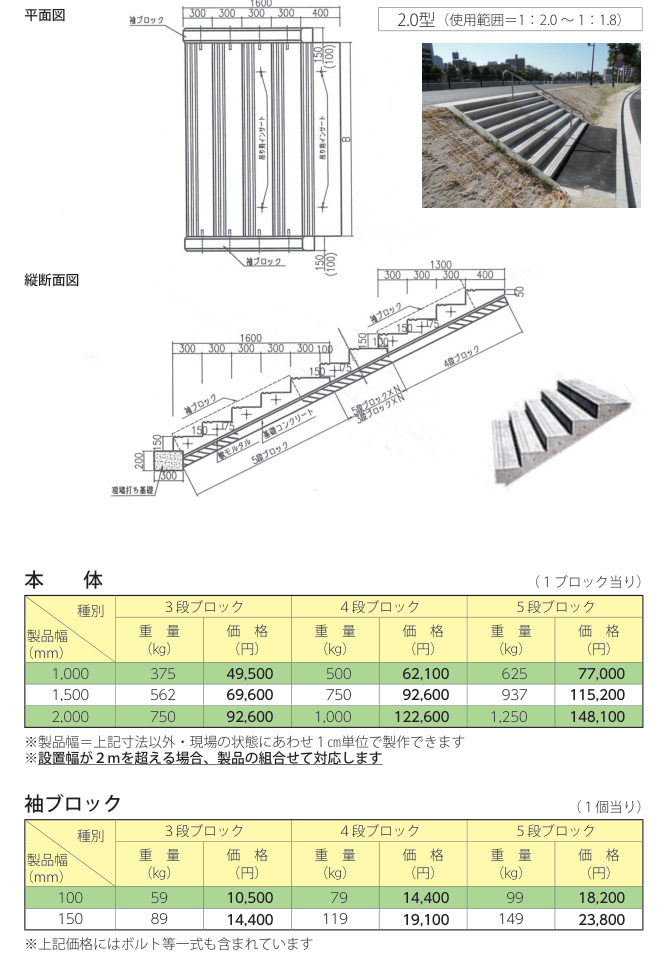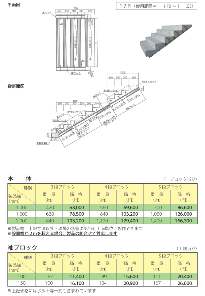 ・法勾配は、1:1.5/1:1.7/1:2.0に対応