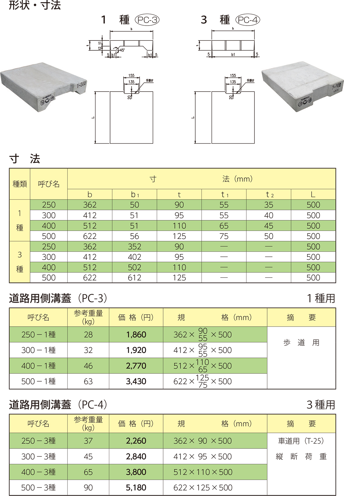 道路の脇の排水機能を持った落とし蓋式の側溝です。JIS規格。落ちふた式U形側溝蓋。
