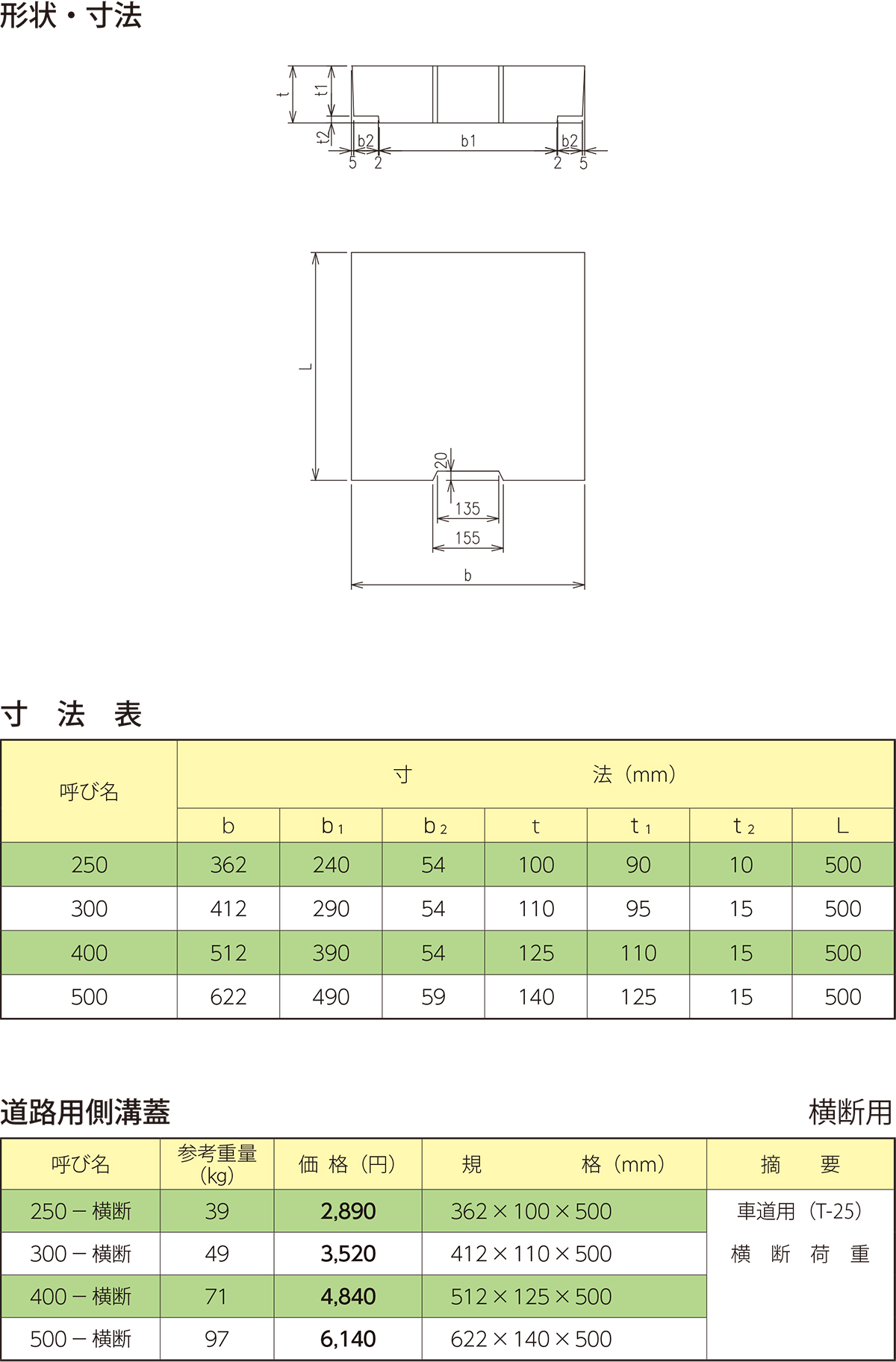 落ちふた式U形側溝 蓋版(JIS A 5372)