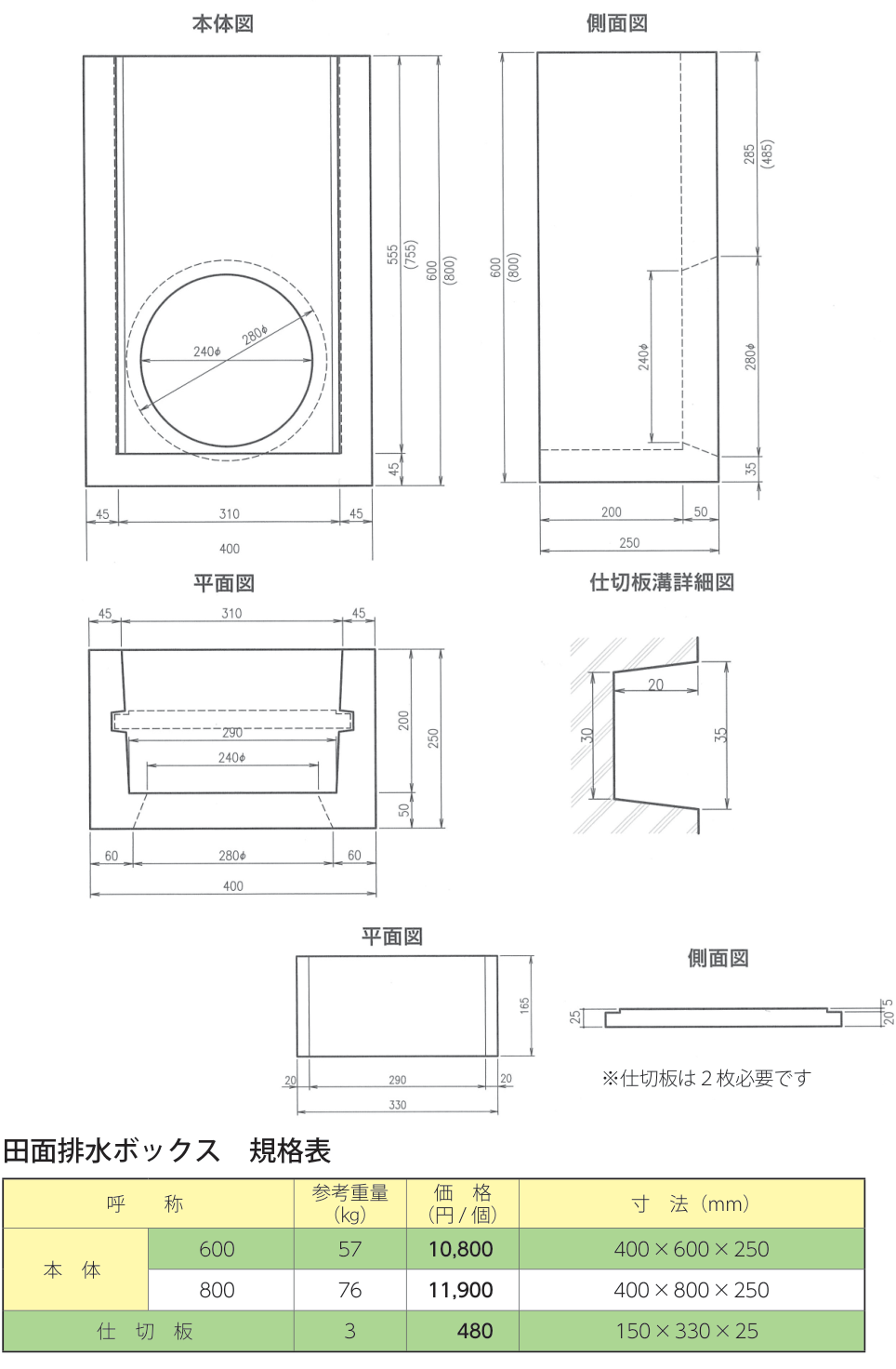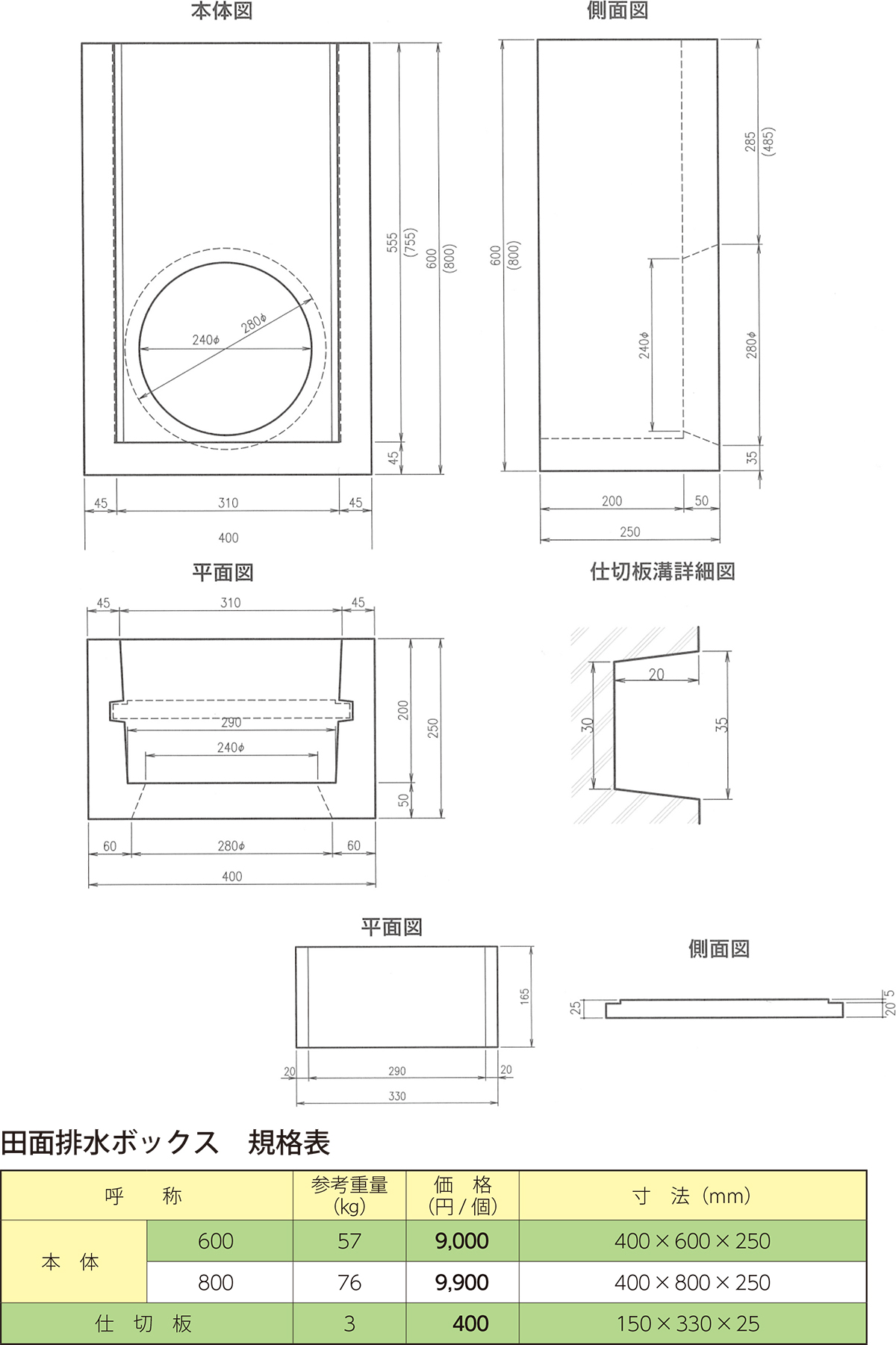 図面 - P191 田面排水ボックス