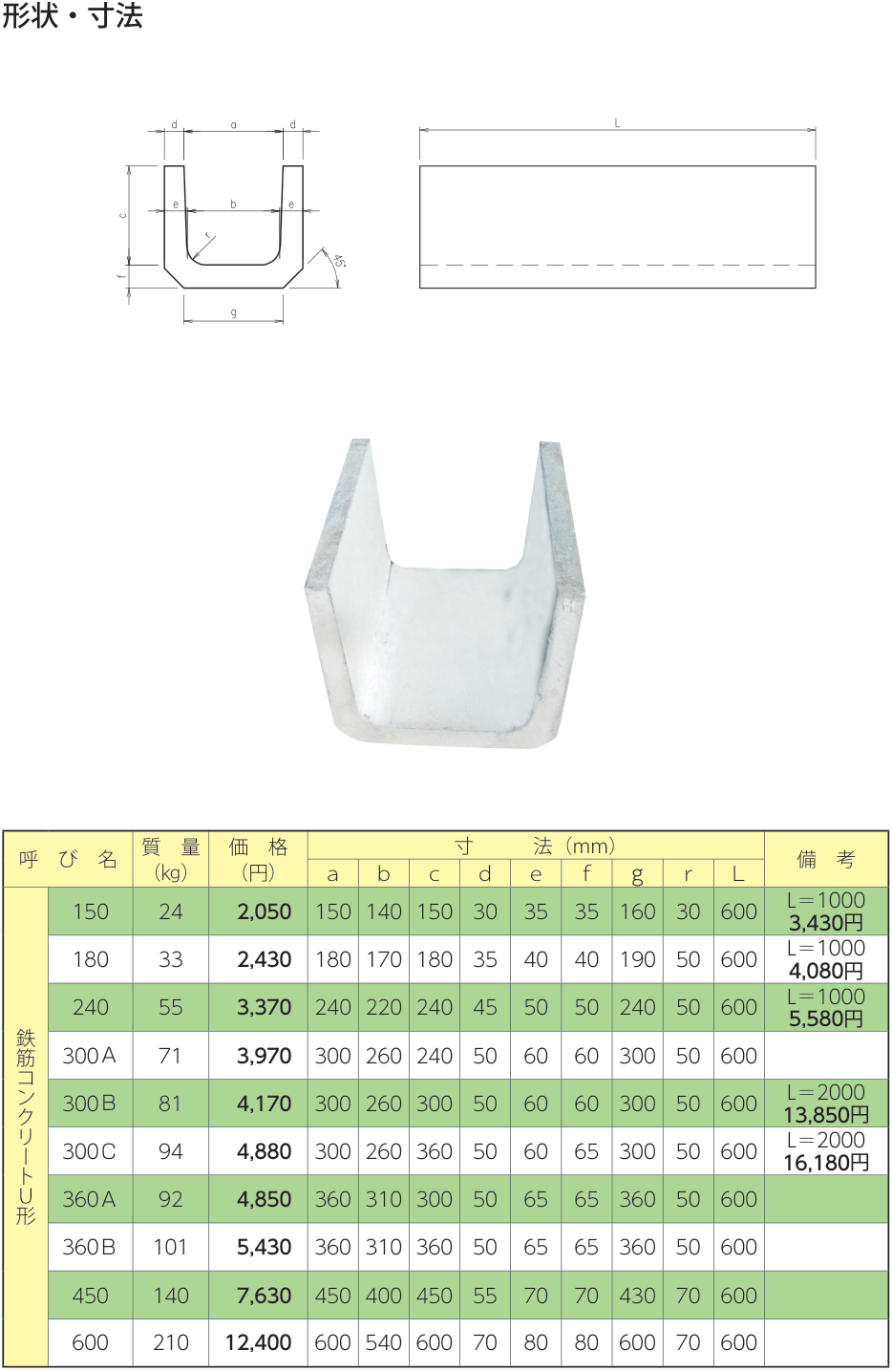 P024 上ぶた式U形側溝(U字溝) JIS A 5372