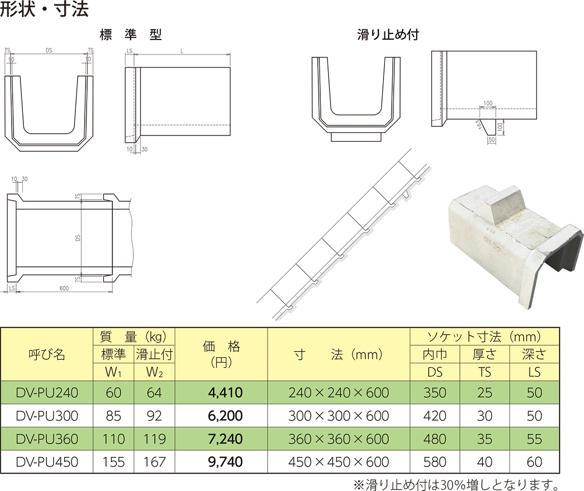 P026-001 ソケット付鉄筋コンクリートU形(ソケット付U字溝)