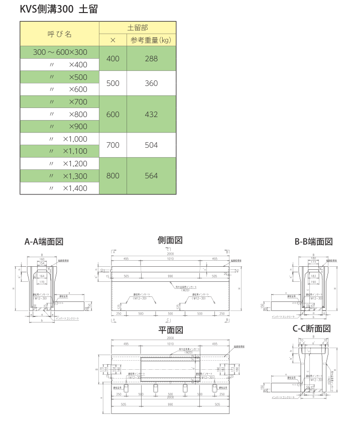 P055 自由勾配(KVS)側溝〈土留〉